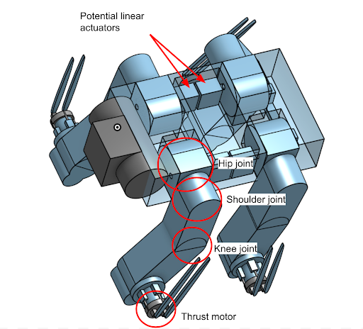 For mechanical, we worked on coming up with mechanisms and general body design. Since we had a new mechanical team, new work that went into was getting them experience with creating a simple robot dog.